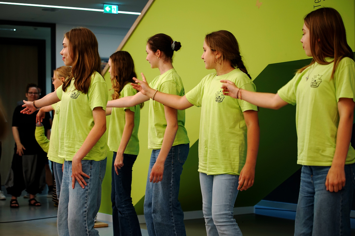 Danach zeigten Schülerinnen der Arche Schule Waren (Müritz) unter der Leitung von Peter Dreier ein Tanz-und Musikstück, dass sie während Ihres Workshops im Rahmen von kunst für schule einstudiert hatten. Eine Führung durch die Präsentation der 22 Workshops und 4 Live-Workshops rundeten das Programm ab.