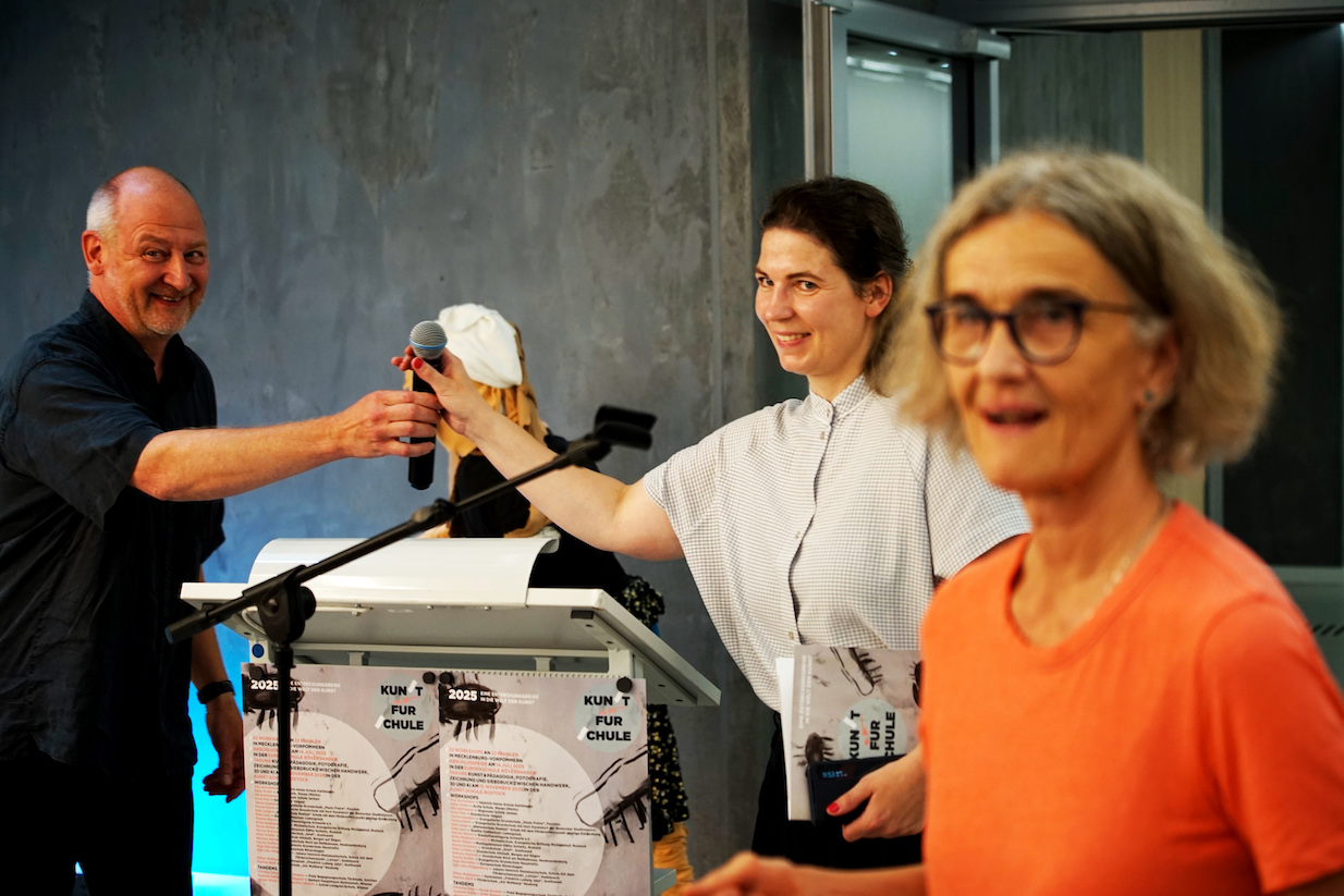 Die Abschlussveranstaltung kunst für schule 2025 fand am Montag, den 14.Juli 2025 in der Europaschule Rövershagen in der Nähe von Rostock statt. Wir bedanken uns bei allen teilnehmenden Schüler:innen, Lehrer:innen, Künstler:innen und Gästen sowie unseren Gastgeber:innen für eine schöne und gelungene Veranstaltung.