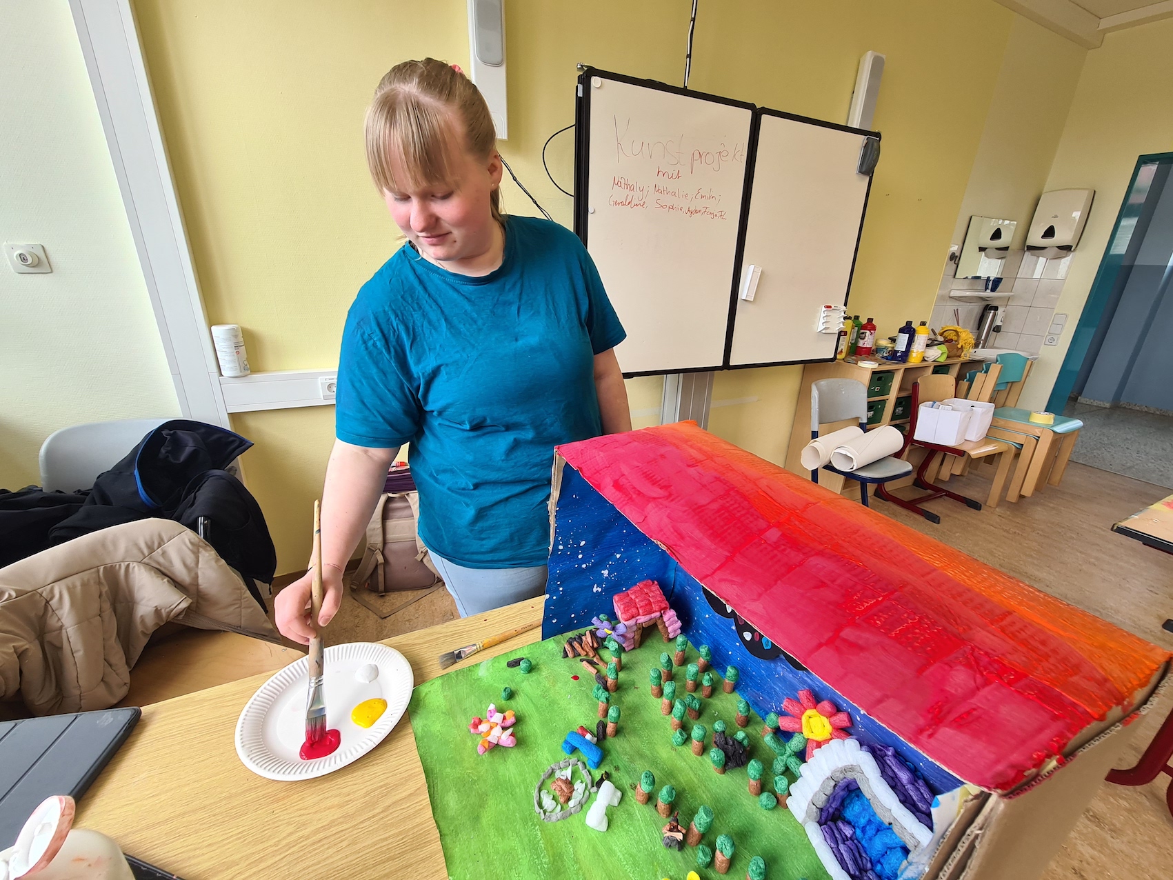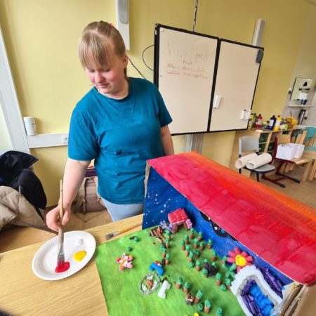 Der Prozess und das bewusste Erleben kreativer Impulse standen im Vordergrund und die Gewissheit, dass ein Ergebnis entsteht, über das man selbst stolz sein kann. Aus der Synergie von Büchern, Kunstkatalogen und gegenseitig erzählten Geschichten als Inspirationsquelle mit Farben,unterschiedlichen Materialen, Filmsequenzen und individuellen Gestaltungsprozessen der Schüler:innen entstanden vielfältige Arbeiten.