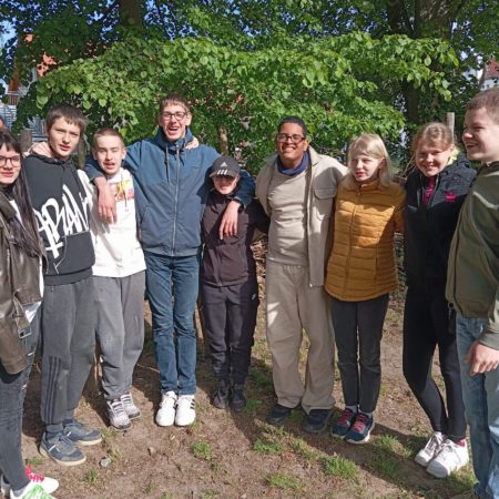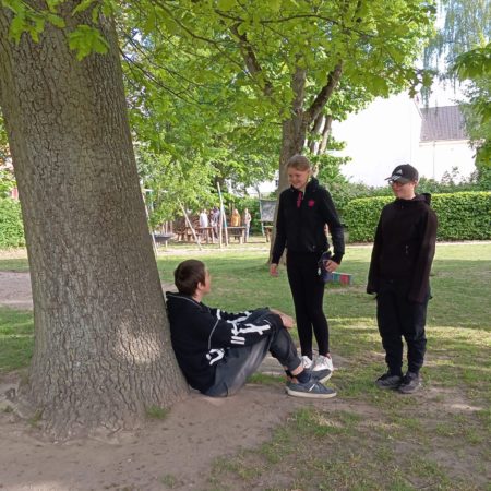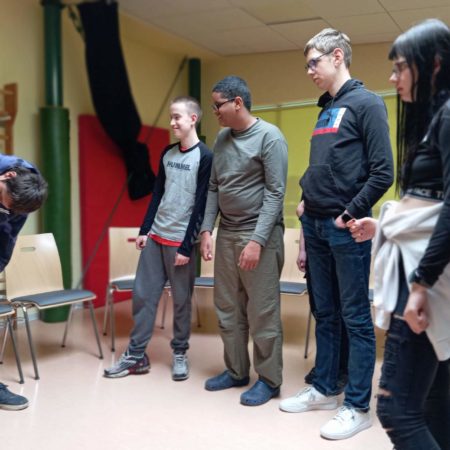 Das Tandem-Projekt wurde mit 10 Schülerinnen und Schülern der Abschlussklasse durchgeführt. In dem 5-tägigen Workshop erarbeiteten sich die Teilnehmer:innen eine Szenenfolge zum Thema Empathie und Aggression.